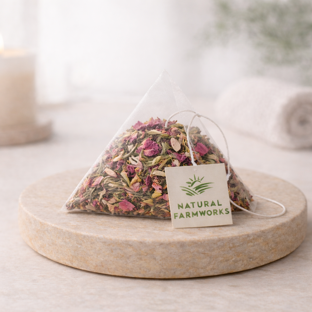 - Plant-based, biodegradable pyramid bags, Certified microplastic free